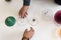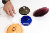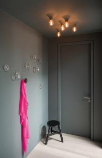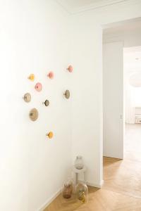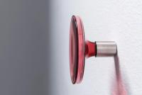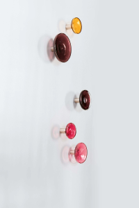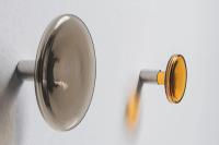 These wall hooks are made of hand blown glass. Their delicate inclusions and inconsistencies are a hallmark of the art of glassblowing and make each one unique. Combined with wall fixtures made from brushed stainless steel, they provide excellent stability and offer sufficient space for coat hangers.