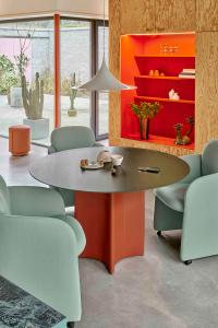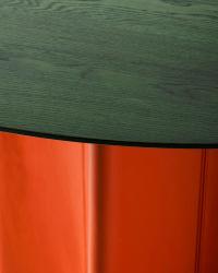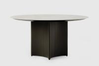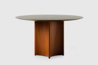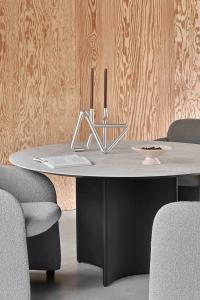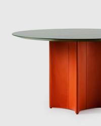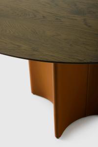 A practical round table with a look all its own. CONKA balances bold geometry with subtle details. With its sculptural diamond-shaped base wrapped in leather, it seamlessly blends function with elegance, becoming a true centerpiece - made to gather around.